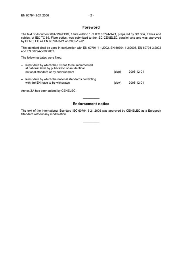 The text of the International Standard IEC 60794-3-21:2005 was approved by CENELEC as a European
