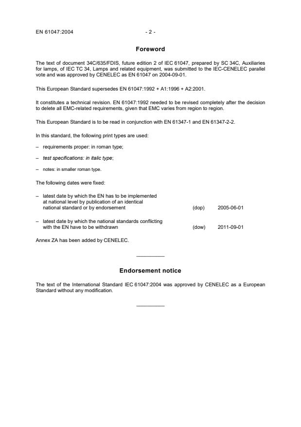 ICS 29.140.20 Supersedes EN 61047:1992 + A1:1996 + A2:2001
