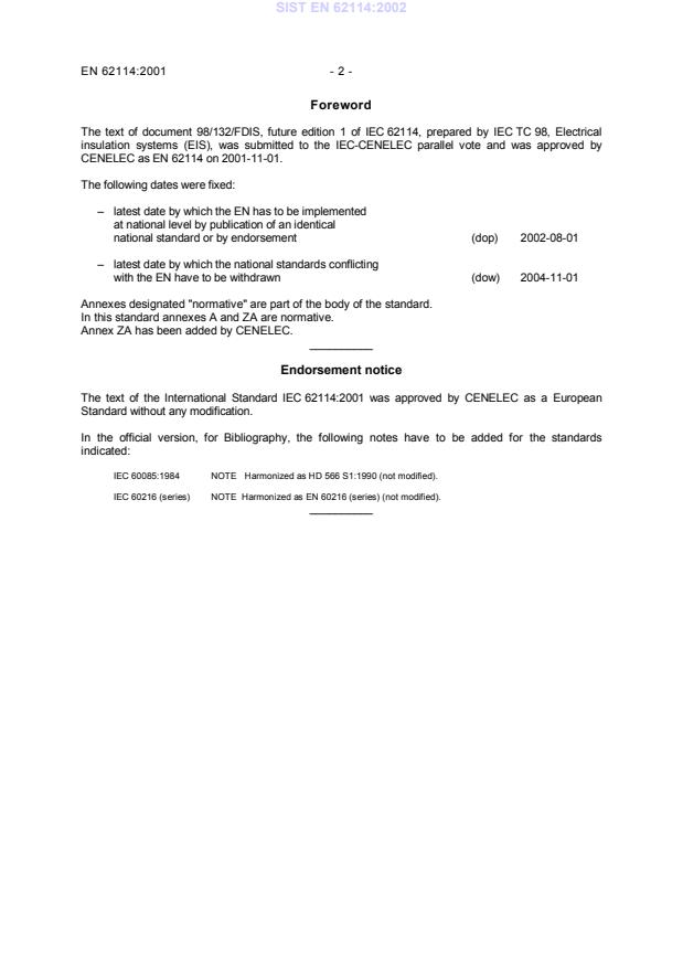 EN 62114:2001 is classified under the following ICS (International Classification for Standards) categories: 29.080.30 - Insulation systems. The ICS classification helps identify the subject area and facilitates finding related standards.