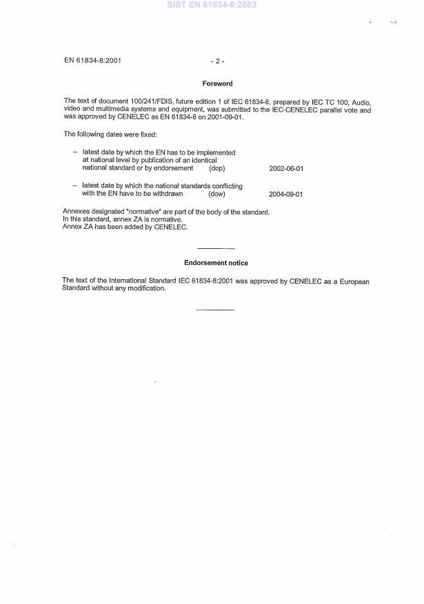 Ta slovenski standard je istoveten z: EN 61834-8:2001