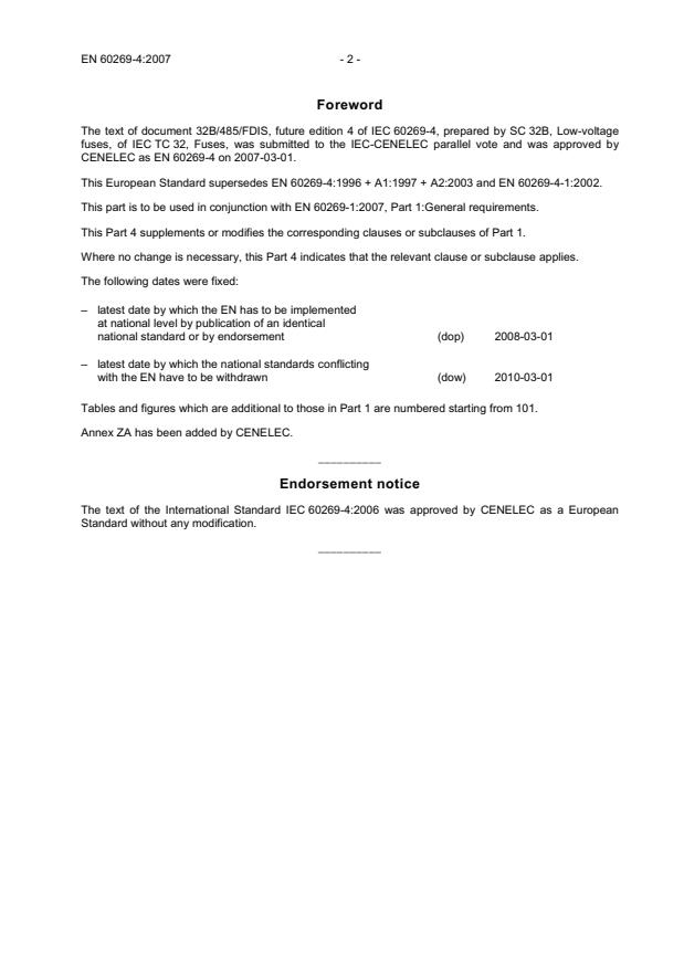 ICS 29.120.50 Supersedes EN 60269-4:1996 + A1:1997 + A2:2003 and EN 60269-4-1:2002