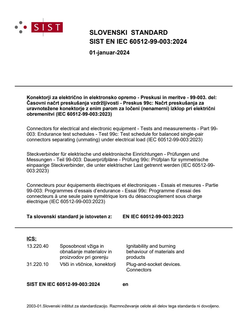 Ta slovenski standard je istoveten z: EN IEC 60512-99-003:2023