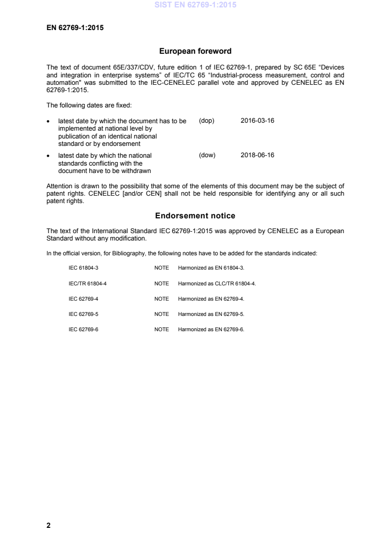 automation" was submitted to the IEC-CENELEC parallel vote and approved by CENELEC as EN