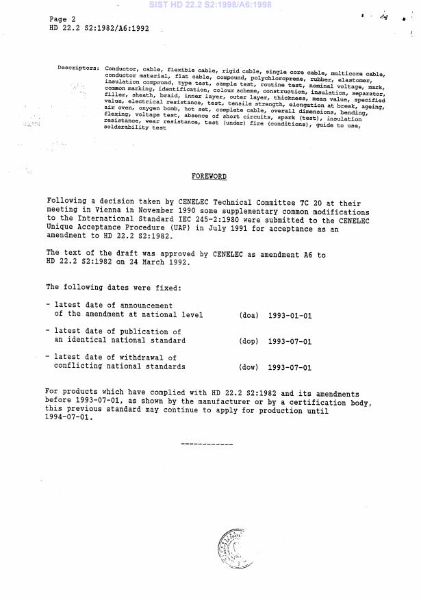 HD 22.2 S2:1992/A6:1992 has the following relationships with other standards: It is inter standard links to HD 22.2 S3:1997. Understanding these relationships helps ensure you are using the most current and applicable version of the standard.