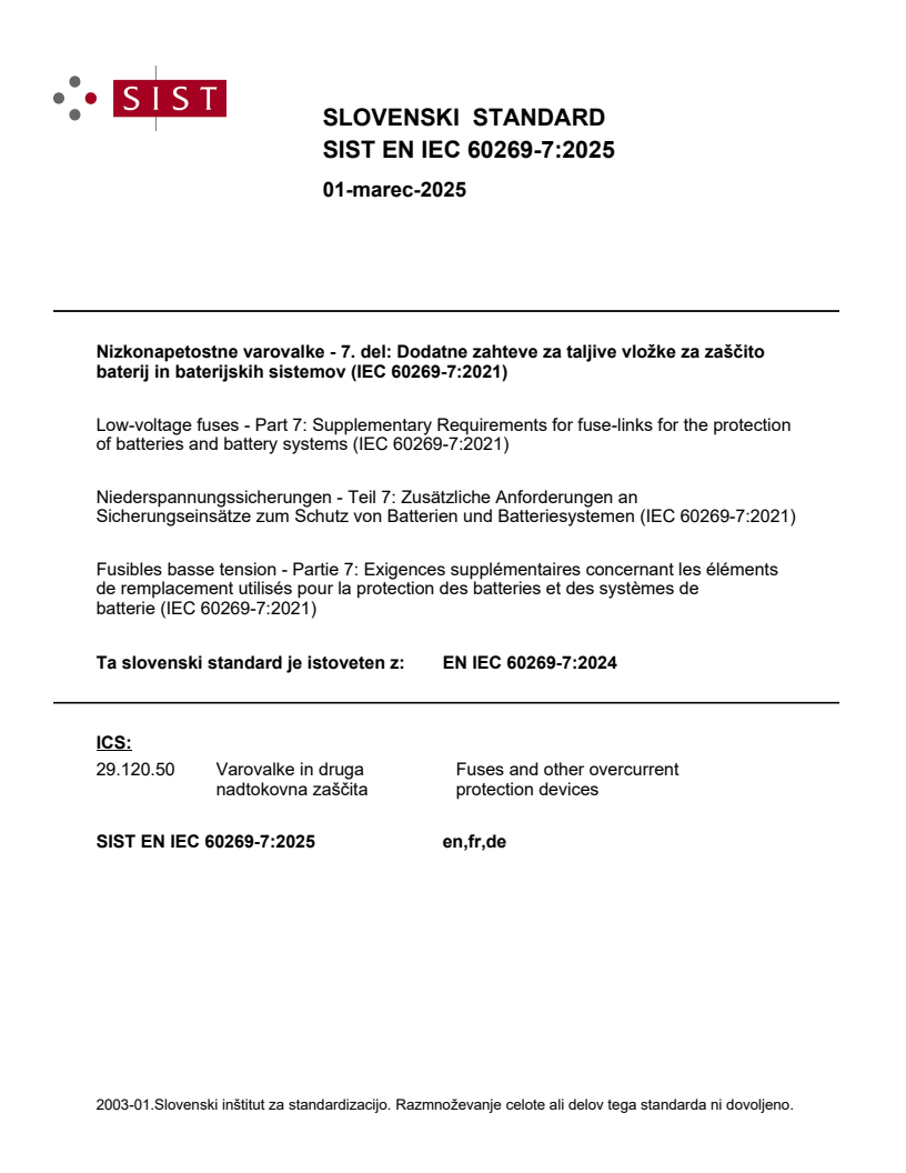 Ta slovenski standard je istoveten z: EN IEC 60269-7:2024