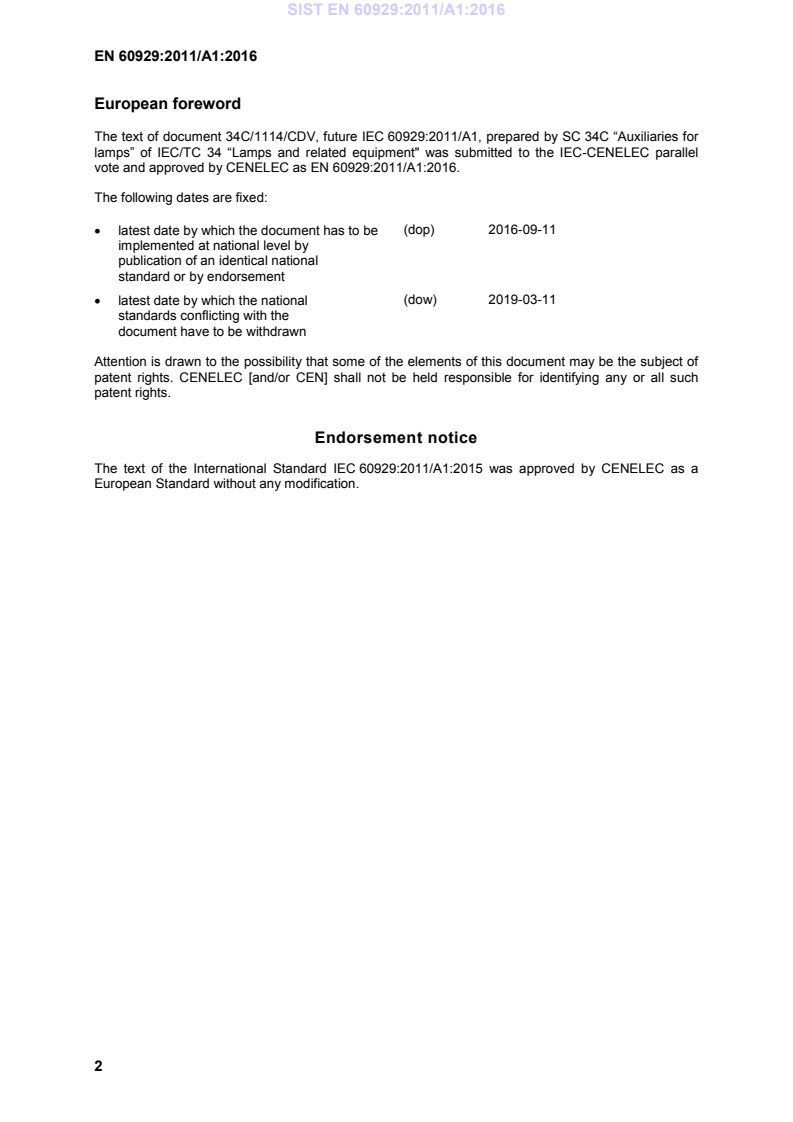 Ta slovenski standard je istoveten z: EN 60929:2011/A1:2016
