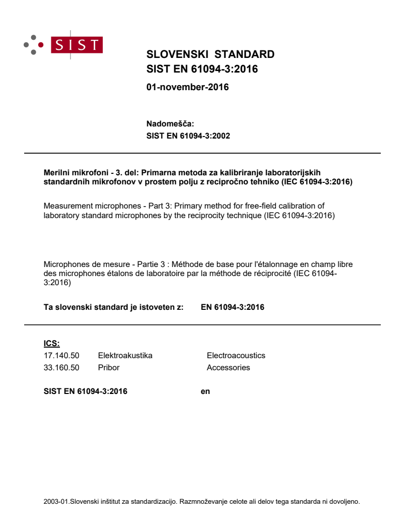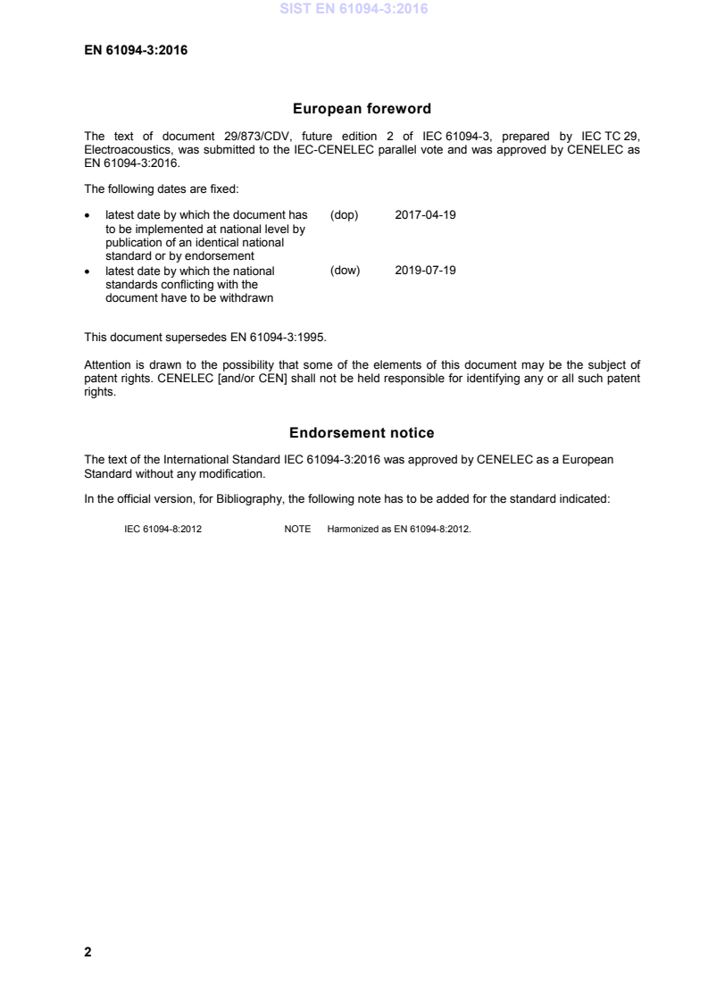 Ta slovenski standard je istoveten z: EN 61094-3:2016