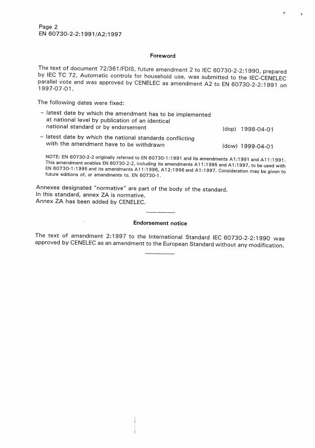 EN following parallel vote * D106/050: new dow * Corrigendum to EN/A2 issued March 2001 * Superseded by EN 60730-2-2:2002