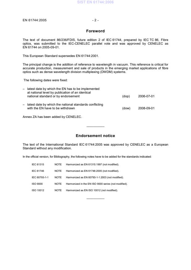 Ta slovenski standard je istoveten z: EN 61744:2005