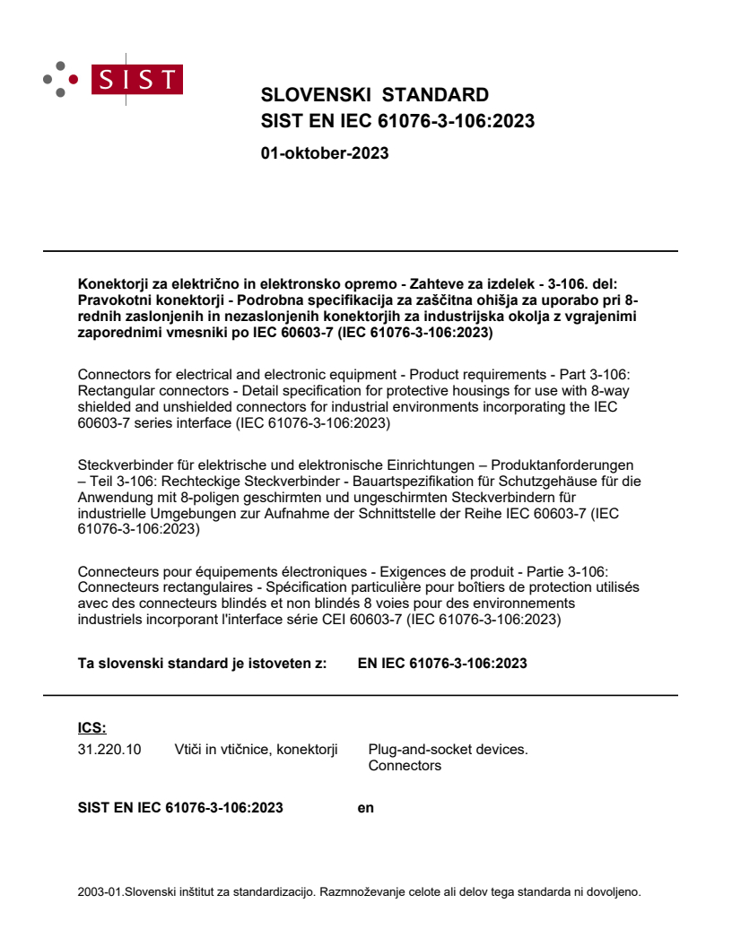 Ta slovenski standard je istoveten z: EN IEC 61076-3-106:2023
