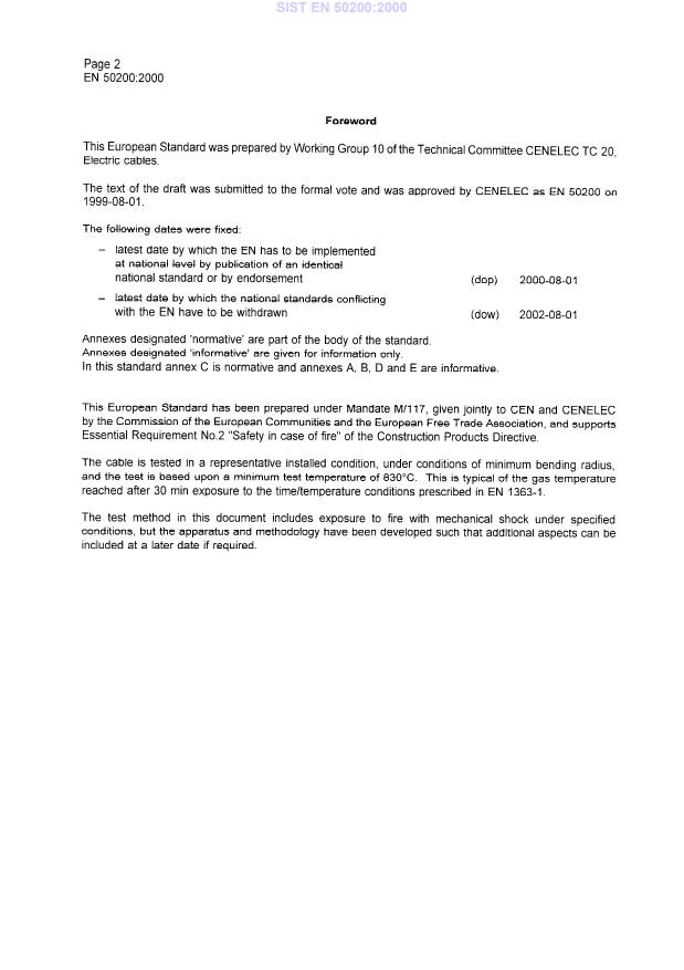 EN 50200:2000 is a standard published by CLC. Its full title is "Method of test for resistance to fire of unprotected small cables for use in emergency circuits". This standard covers: Superseded by EN 50200:2006