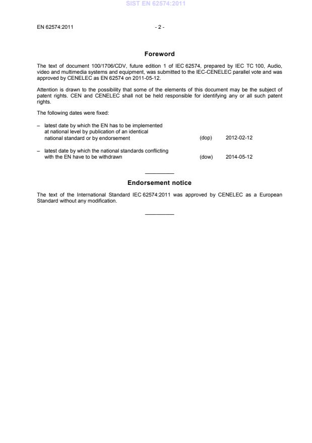 Ta slovenski standard je istoveten z: EN 62574:2011