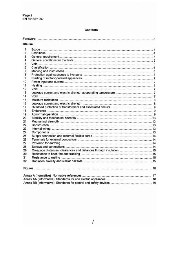 EN 50165:1997 is a standard published by CLC. Its full title is "Electrical equipment of non-electric appliances for household and similar purposes - Safety requirements". This standard covers: This clause of part 1 is replaced by: This standard deals with the safety of electrical equipment of non-electric appliances for household and similar purposes, their rated voltage being not more than 250 V for single-phase appliances and 480 V for other appliances. NOTE 1: Examples of such appliances are: cooking appliances; heating boilers; instantaneous water heaters,storage water heaters; room heaters; warm air heaters; absorption refrigerators; commercial catering equipment; laundry and cleaning appliances. This standard also applies to electrical equipment which is located separately from the appliance. This standard is to be applied in conjunction with the relevant standards for appliances and for control devices. Examples are listed in annexes AA and BB. NOTE 2: Attention is drawn to the fact that for appliances intended to be used in vehicles or on board ships or aircraft, additional requirements may be necessary