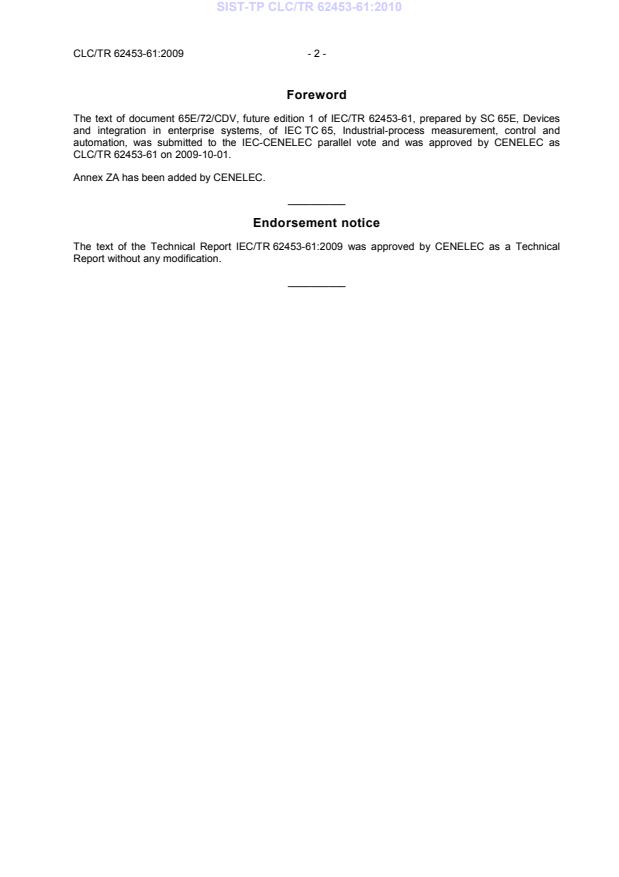 Ta slovenski standard je istoveten z: CLC/TR 62453-61:2009