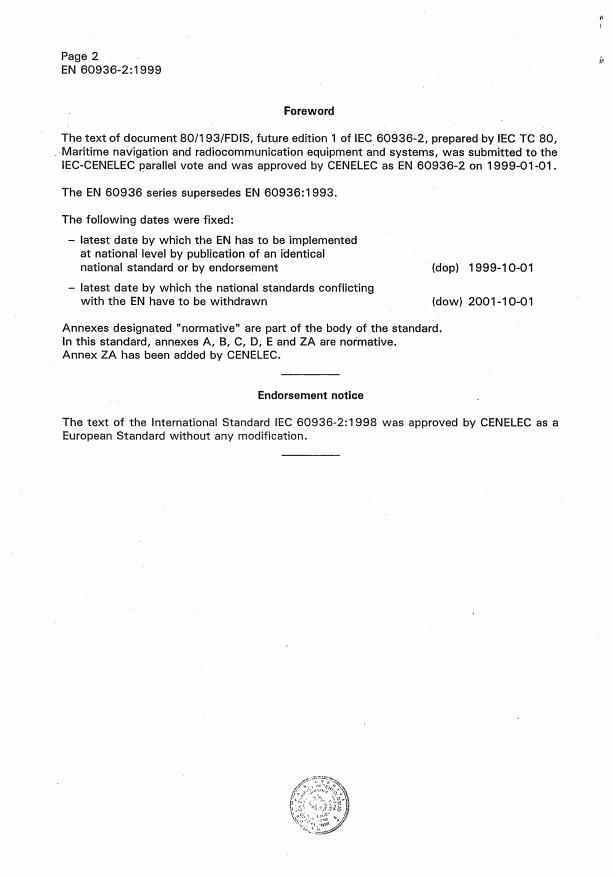 EN 60936-2:1999 is a standard published by CLC. Its full title is "Maritime navigation and radiocommunication equipment and systems - Radar - Part 2: Shipborne radar for high-speed craft (HSC) - Methods of testing and required test results". This standard covers: Specifies the minimum operational and performance requirements, methods of testing and required test results, as required by the relevant IMO resolutions on the high speed craft code. Is associated with EN 60945.