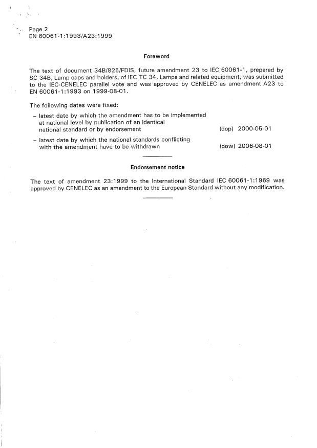 and safety - Part 1: Lamp caps - (IEC 60061-1:1969/A23:1999)