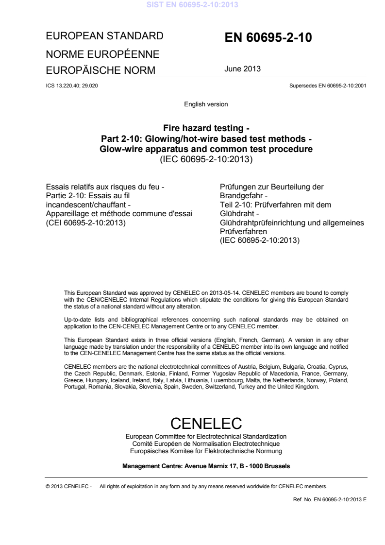 ICS 13.220.40; 29.020 Supersedes EN 60695-2-10:2001