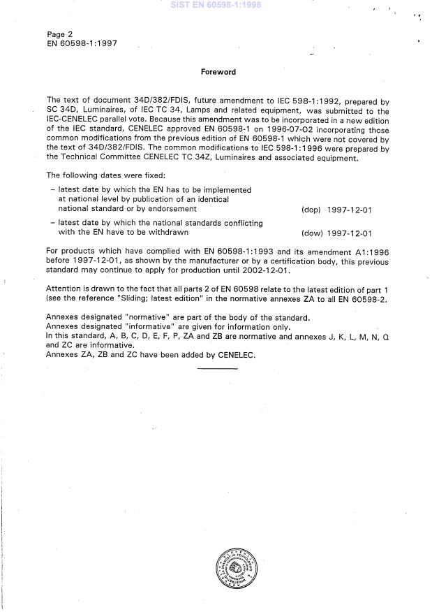 Ta slovenski standard je istoveten z: EN 60598-1:1997