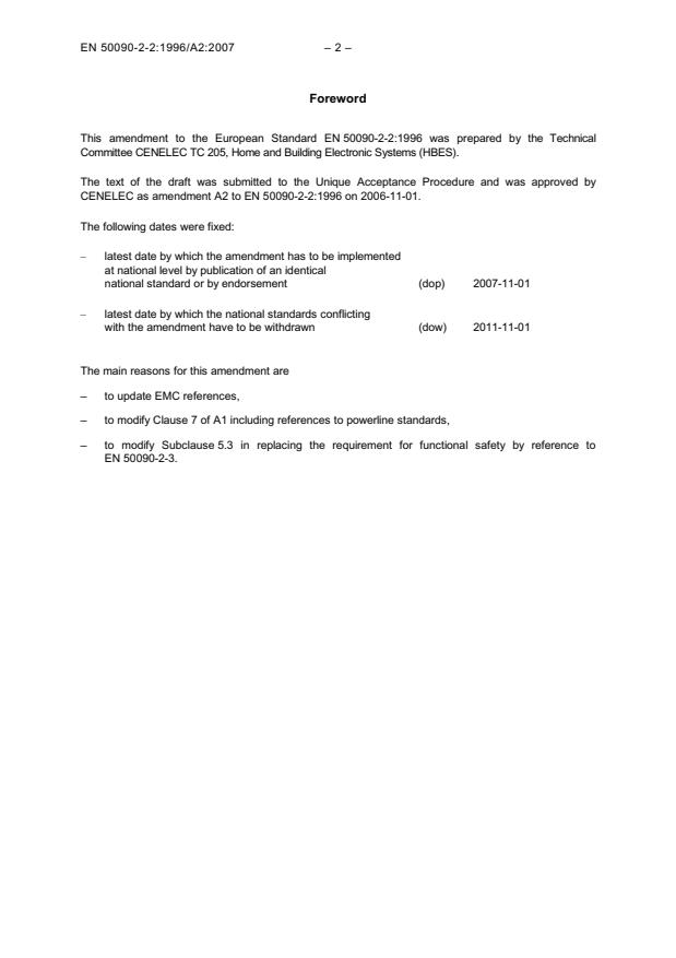 This amendment A2 modifies the European Standard EN 50090-2-2:1996; it was approved by CENELEC on