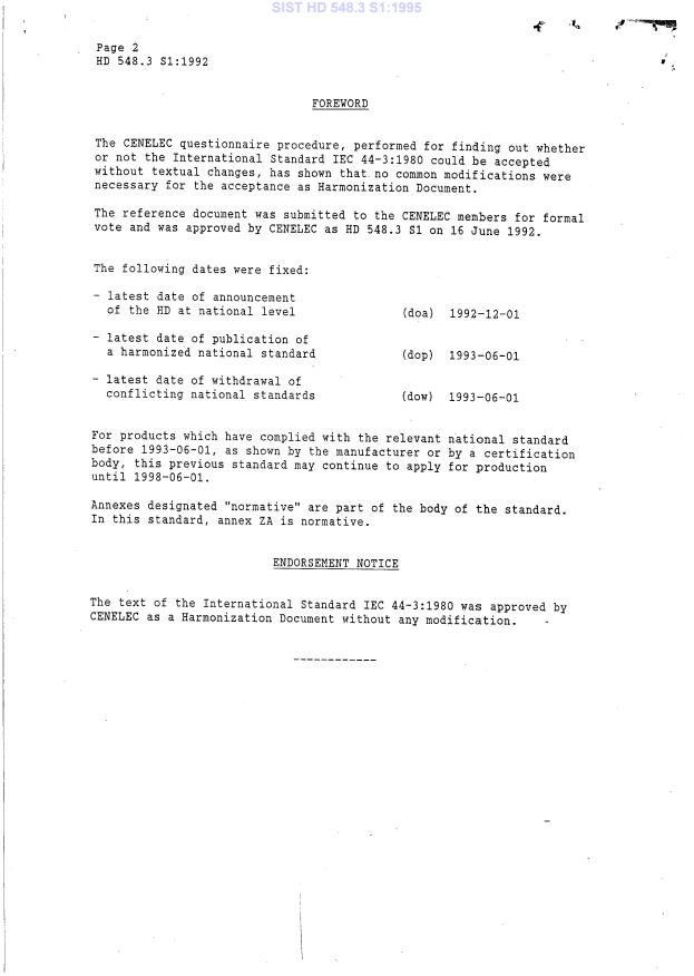 HD 548.3 S1:1992 has the following relationships with other standards: It is inter standard links to EN 60044-3:2003. Understanding these relationships helps ensure you are using the most current and applicable version of the standard.