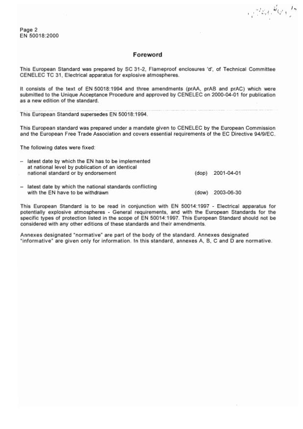 Supersedes EN 50018:1994 + A1, A2 & A3 * Superseded by EN 60079-1:2004