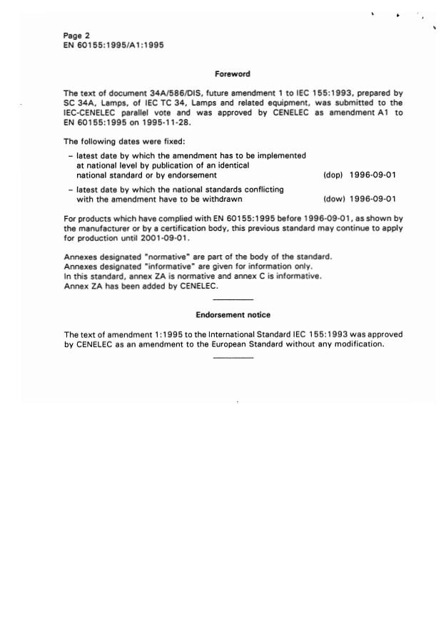 EN 60155:1995/A1:1995 is a amendment published by CLC. Its full title is "Glow-starters for fluorescent lamps". This standard covers: EN following parallel vote