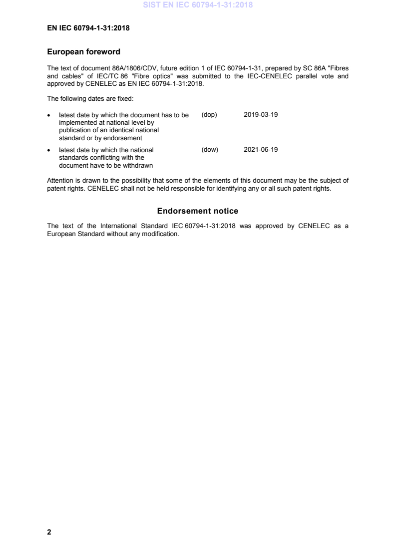 Endorsement notice The text of the International Standard IEC 60794-1-31:2018 was approved by CENELEC as a European Standard without any modification. SIST EN IEC 60794-1-31:2018