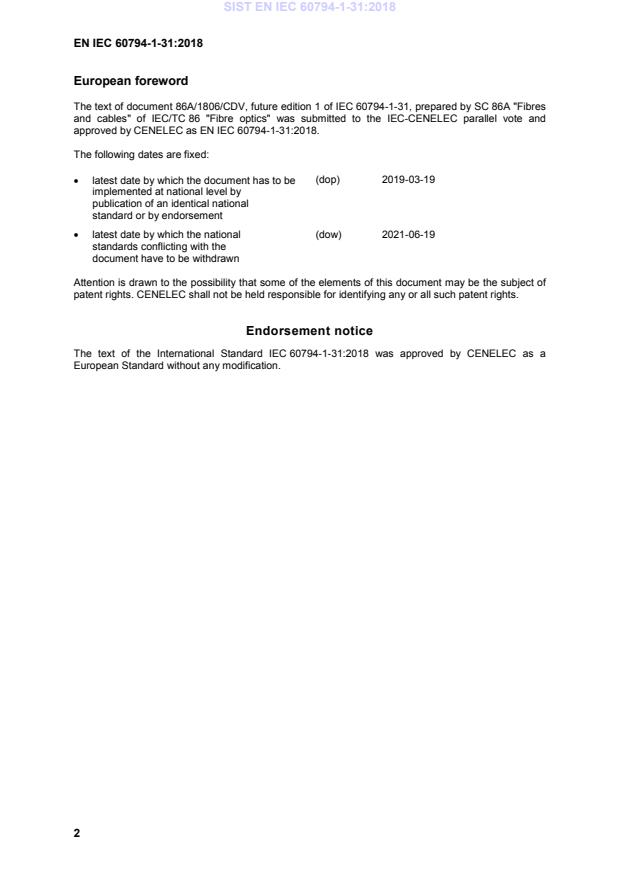 Endorsement notice The text of the International Standard IEC 60794-1-31:2018 was approved by CENELEC as a European Standard without any modification. SIST EN IEC 60794-1-31:2018