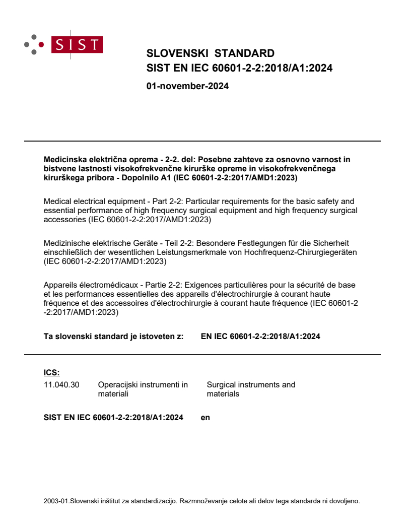 Ta slovenski standard je istoveten z: EN IEC 60601-2-2:2018/A1:2024