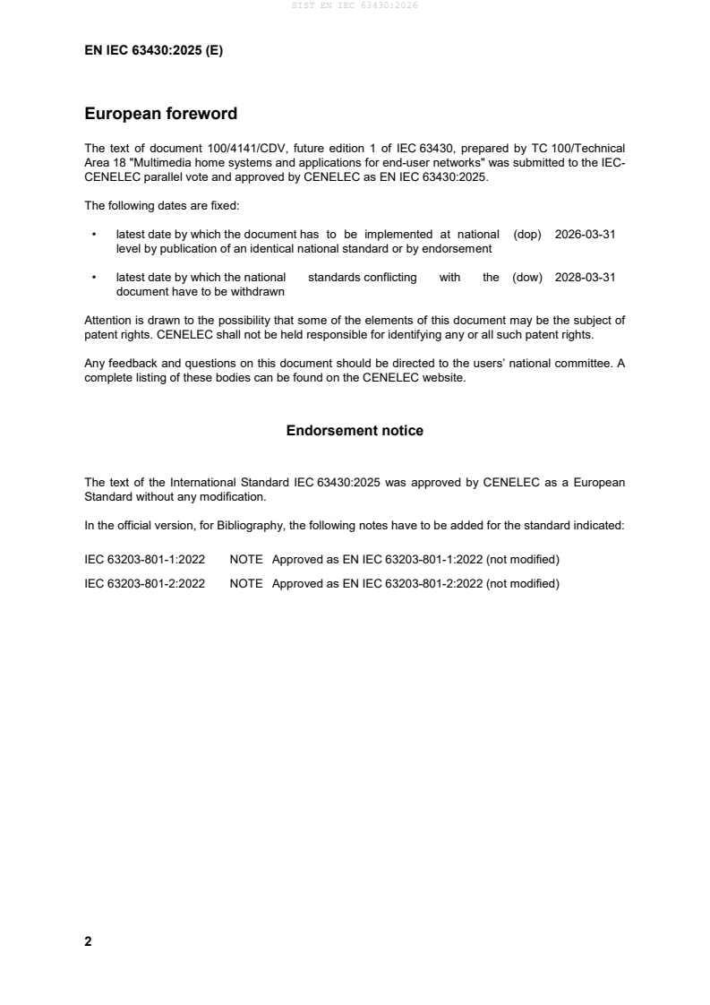 IEC 63430 has been prepared by Technical Area 18: Multimedia home systems and applications