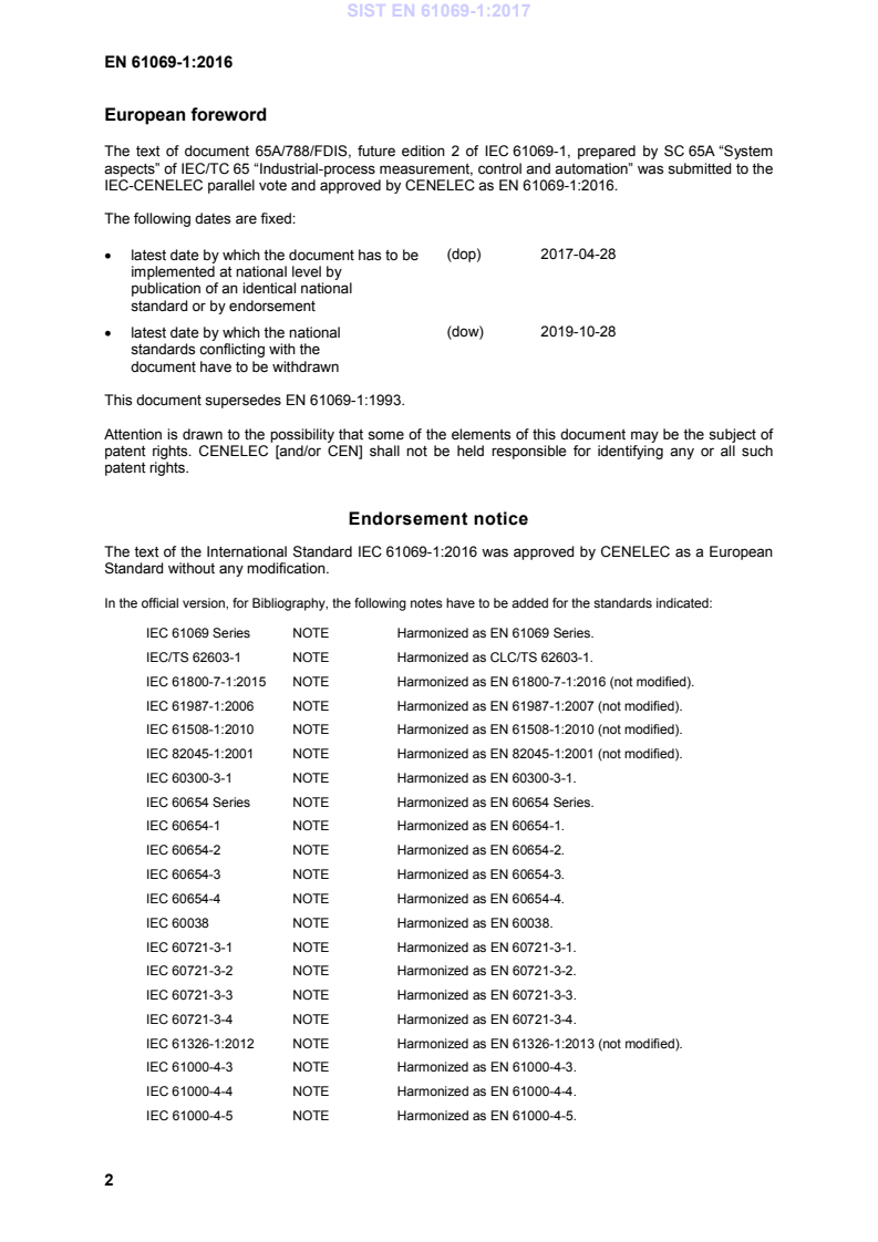 EN 61069-1:2016 is a foundational document for consistent, repeatable assessment of industrial measurement and control systems and should be used together with relevant product, EMC and safety standards for comprehensive system evaluation.