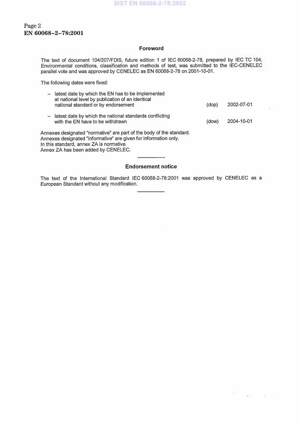 Ta slovenski standard je istoveten z: EN 60068-2-78:2001