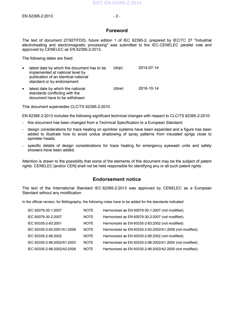EN 62395-2:2013 has the following relationships with other standards: It is inter standard links to CLC/TS 62395-2:2010, EN 62395-1:2013, EN IEC 60519-1:2020, EN 60519-10:2013, prEN IEC/IEEE 62395-2:2026. Understanding these relationships helps ensure you are using the most current and applicable version of the standard.