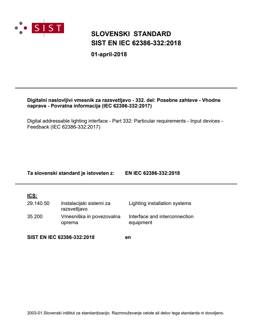 Ta slovenski standard je istoveten z: EN IEC 62386-332:2018