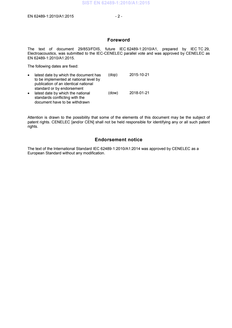 This amendment A1 modifies the European Standard EN 62489-1:2010; it was approved by CENELEC on 2015-01-21. CENELEC