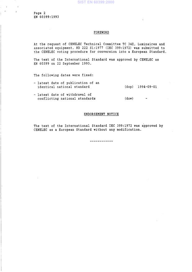 EN 60399:1993 has the following relationships with other standards: It is inter standard links to EN 60399:2004, EN 61184:1994, EN 60238:1998, EN 60238:1992, EN 61184:1997, EN 60838-1:1998/A1:1999, EN 60400:1992, EN 60238:1996, EN 60400:1996, EN 60400:2000, EN 60238:1992/A1:1995, EN 60399:1993/A2:1999, EN 60399:1993/A1:1997. Understanding these relationships helps ensure you are using the most current and applicable version of the standard.