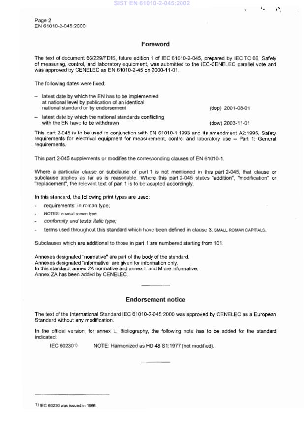 EN 61010-2-045:2000 has the following relationships with other standards: It is inter standard links to EN 61010-2-040:2005, EN 60073:1996, EN 61770:1999, EN 60252:1994. Understanding these relationships helps ensure you are using the most current and applicable version of the standard.