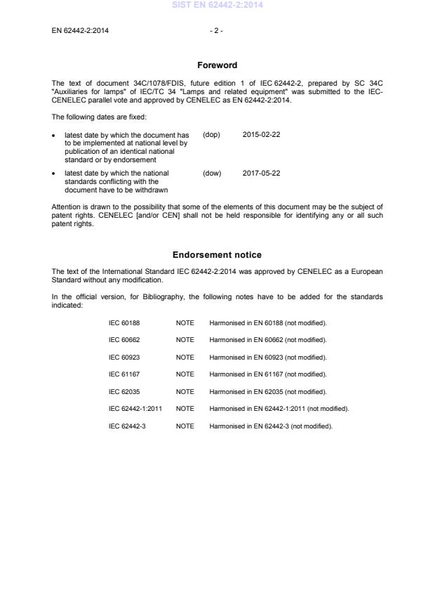 CENELEC parallel vote and approved by CENELEC as EN 62442-2:2014.