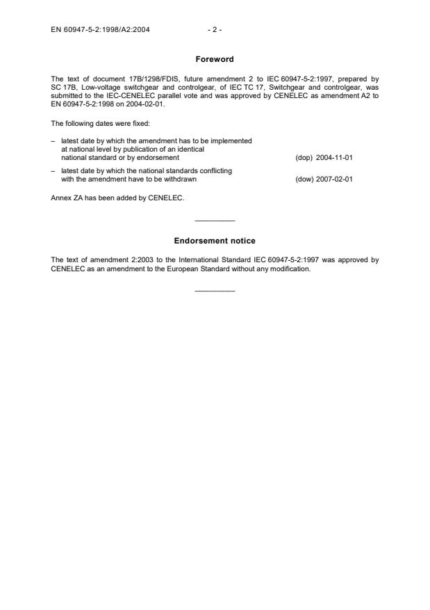 This amendment A2 modifies the European Standard EN 60947-5-2:1998; it was approved by CENELEC