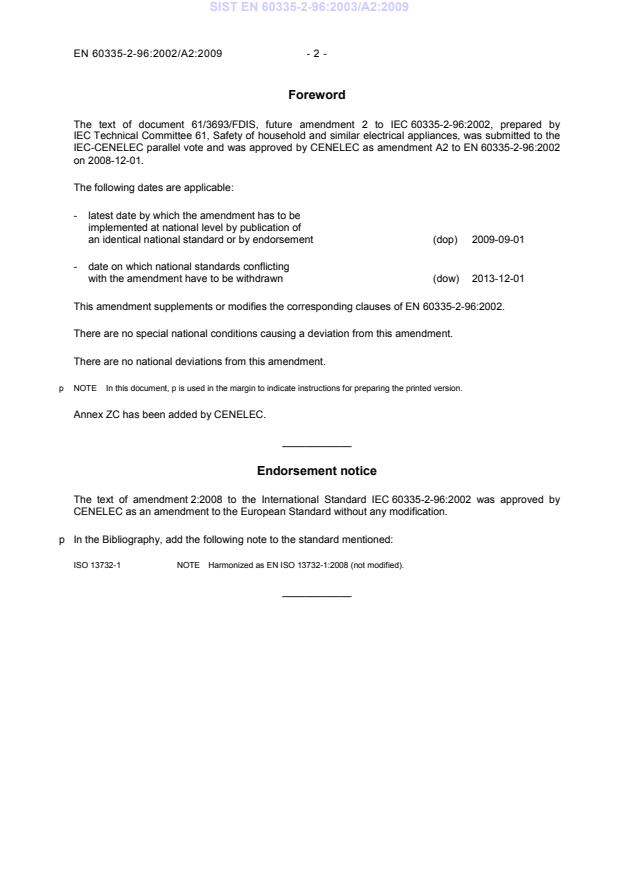 This amendment A2 modifies the European Standard EN 60335-2-96:2002; it was approved by CENELEC