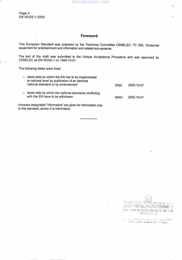 Ta slovenski standard je istoveten z: EN 50332-1:2000