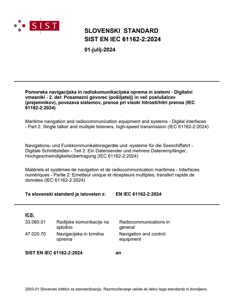 Ta slovenski standard je istoveten z: EN IEC 61162-2:2024