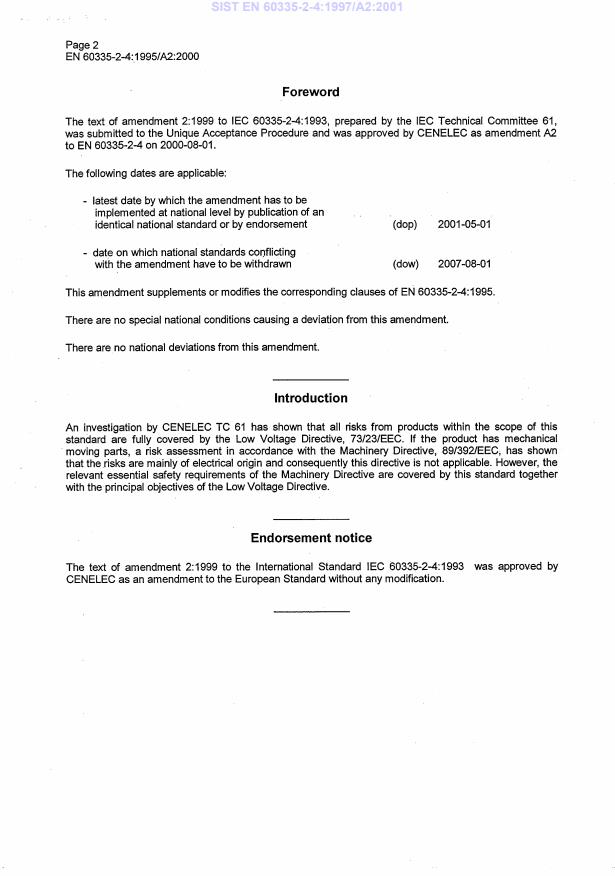 EN 60335-2-4:1995/A2:2000 is associated with the following European legislation: EU Directives/Regulations: 73/23/EEC. When a standard is cited in the Official Journal of the European Union, products manufactured in conformity with it benefit from a presumption of conformity with the essential requirements of the corresponding EU directive or regulation.