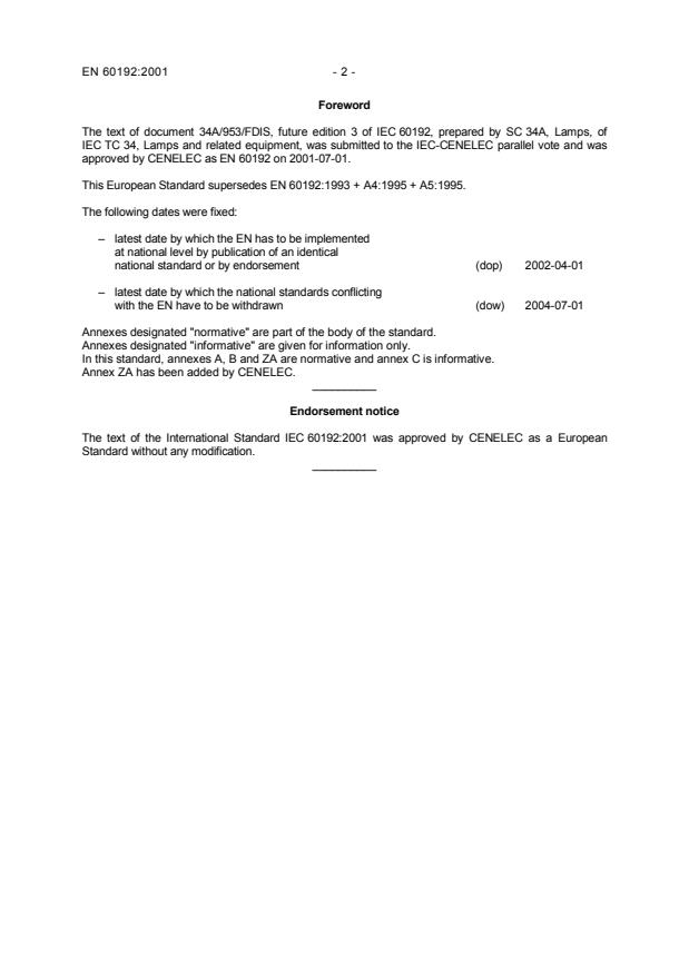 ICS 29.140.30 Supersedes EN 60192:1993 + A4:1995 + A5:1995