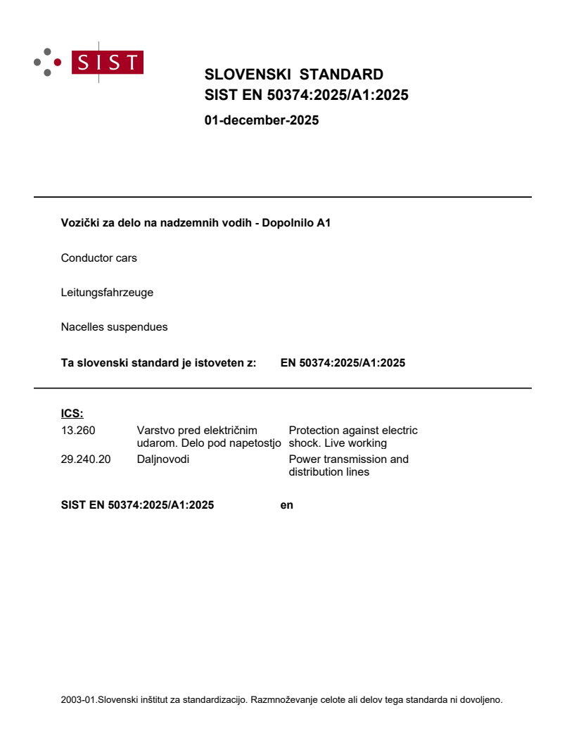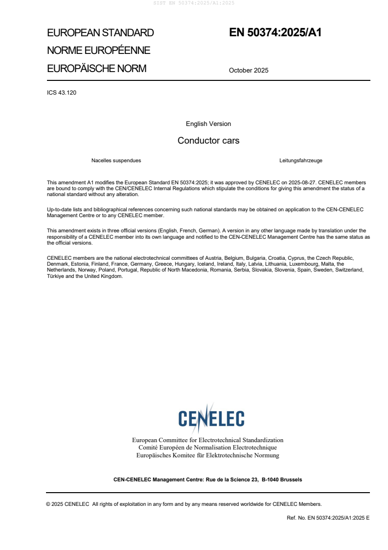 SIST EN 50374:2025/A1:2025 - Conductor cars