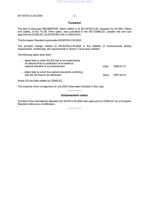 The text of the International Standard IEC 60793-2-50:2004 was approved by CENELEC as a European