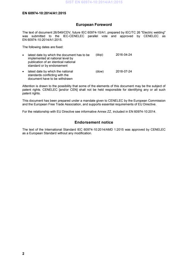 This amendment A1 modifies the European Standard EN 60974-10:2014; it was approved by CENELEC on 2015-07-24. CENELEC