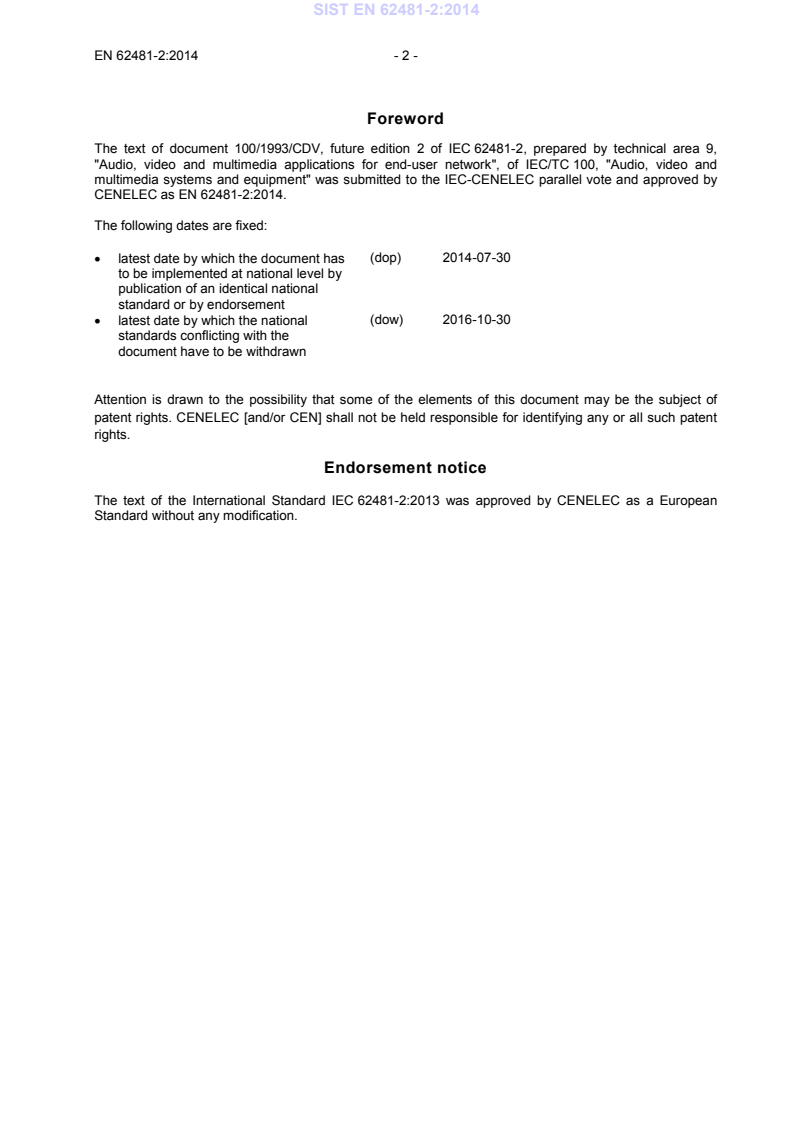 Ta slovenski standard je istoveten z: EN 62481-2:2014