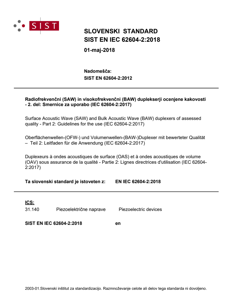 Ta slovenski standard je istoveten z: EN IEC 62604-2:2018