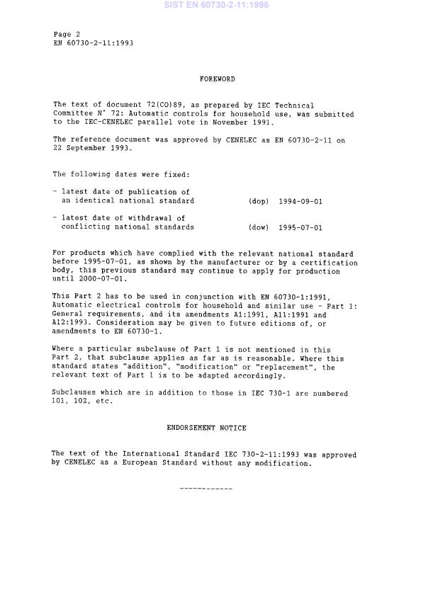 EN 60730-2-11:1993 has the following relationships with other standards: It is inter standard links to EN 60730-2-11:2008, EN 60730-2-11:1993/A1:1997, EN 60730-2-11:1993/A2:1998, EN 60730-2-11:1993/A11:2005. Understanding these relationships helps ensure you are using the most current and applicable version of the standard.